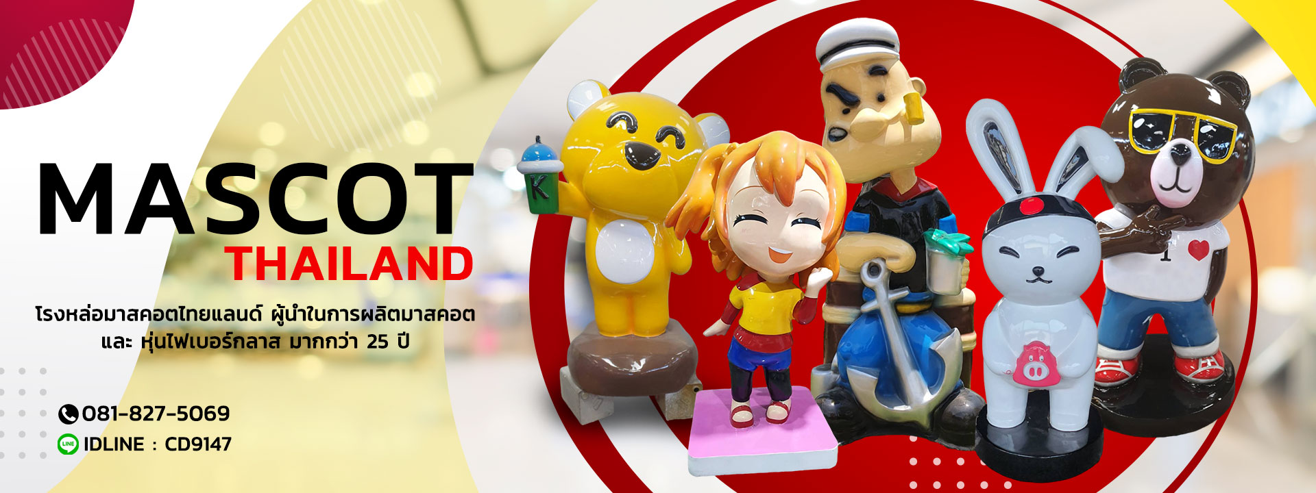 โรงหล่อมาสคอตไทยแลนด์ได้เปิดดำเนินงานมากกว่า 25 ปี เรารับหล่อมาสคอตหรือวิธีสมัยใหม่คือการหล่อประกอบโดยมีช่างฝีมือดีเยี่ยม เราเน้นรูปแบบออกแบบตามที่ลูกค้าต้องการโดยเน้นถึงรปแบบมาตรฐานที่ลูกค้าต้องการและการบริการที่ประทับใจในปัจจุบัน